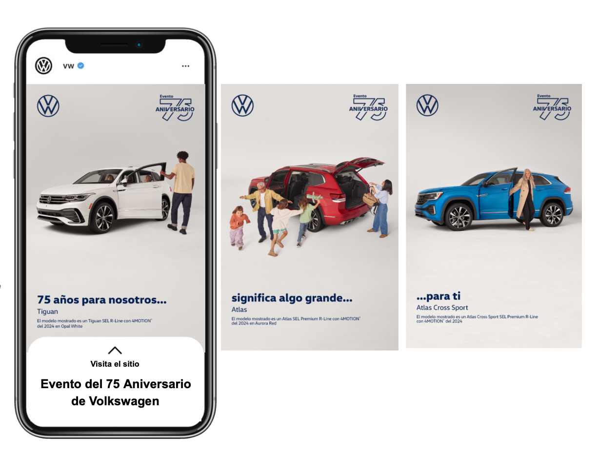 Creation of Spanish campaign concepts - web ads and social. Maintaining brand consistency while optimizing for performance for VW dealership business.
